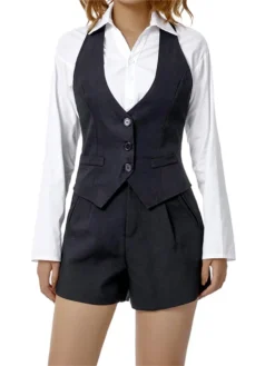 Women Vest Caot Sleeveless V Neck Button