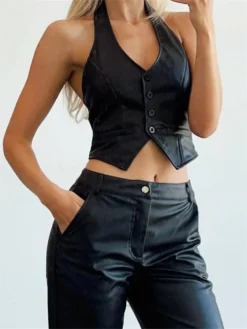 Summer Women’s Halter Vest Open Back Solid