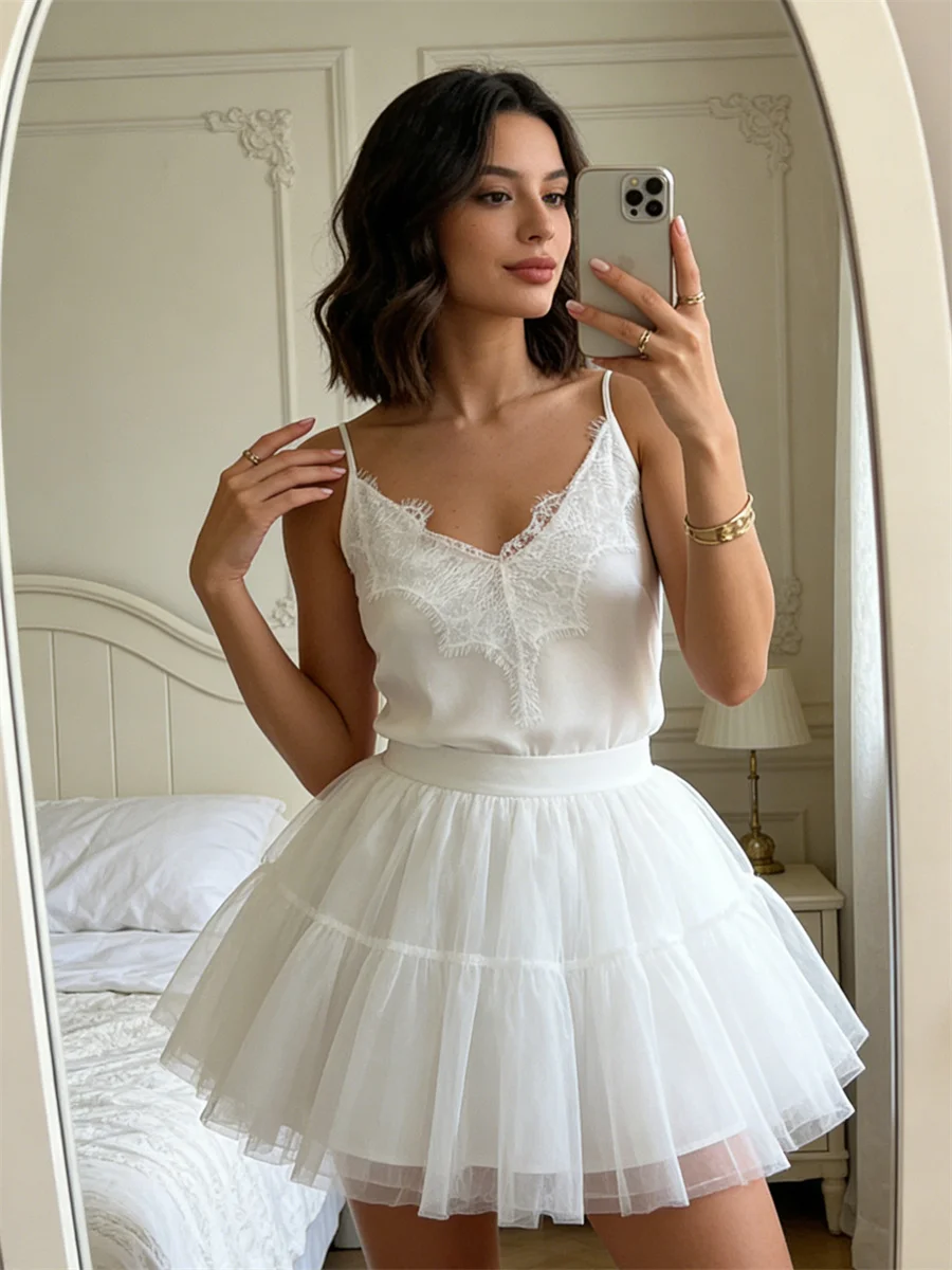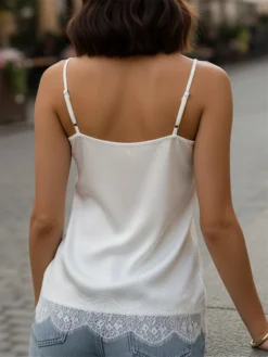 Women Tank Tops Deep V Neck Sleeveless Adjustable Spaghetti Strap Lace Patchwork Summer Vest