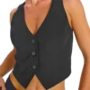 Women Tank Tops Sleeveless Button Closure Vest